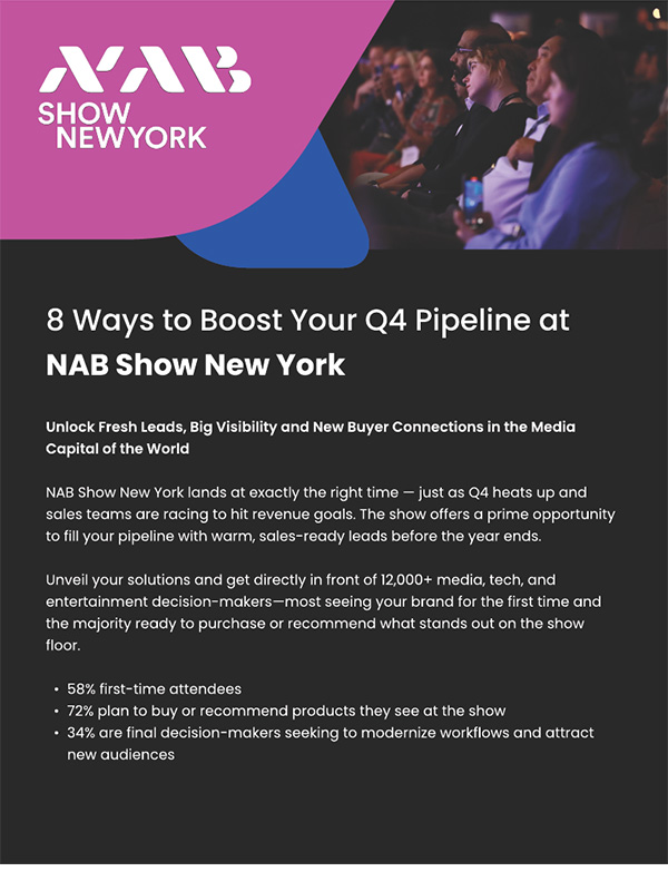In New York, video drives everything — from brand identity to bottom lines. At NAB Show New York, you’ll connect with high-intent buyers across media, entertainment, sports, finance, and enterprise — many of whom don’t attend NAB Show in Las Vegas. Don’t miss your chance to turn year-end momentum into lasting revenue.